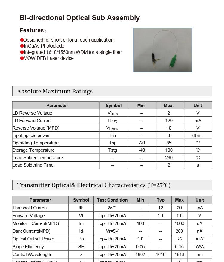 PON ONU BOSA Bi-Directional Optical Sub-Assembly